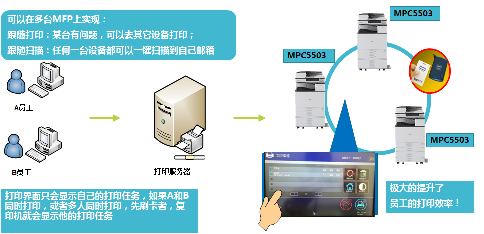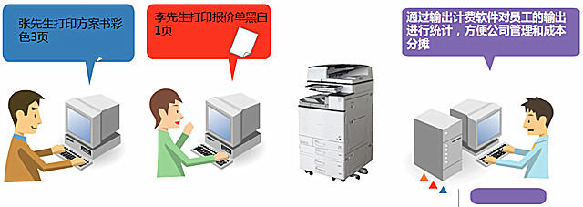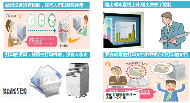 1. 降低文印输出成本-----可通过权限控制和理光设备,让文印输出减少,降低成本,可以节省月输出量;
