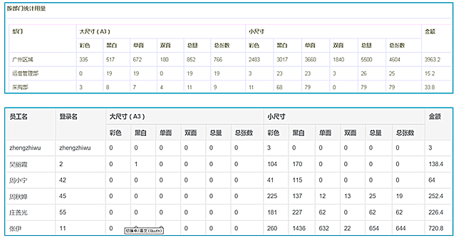 3. 可视化的文印输出报表----可统计到个人、部门、设备的报表,行政不必再手动制作文印报表。